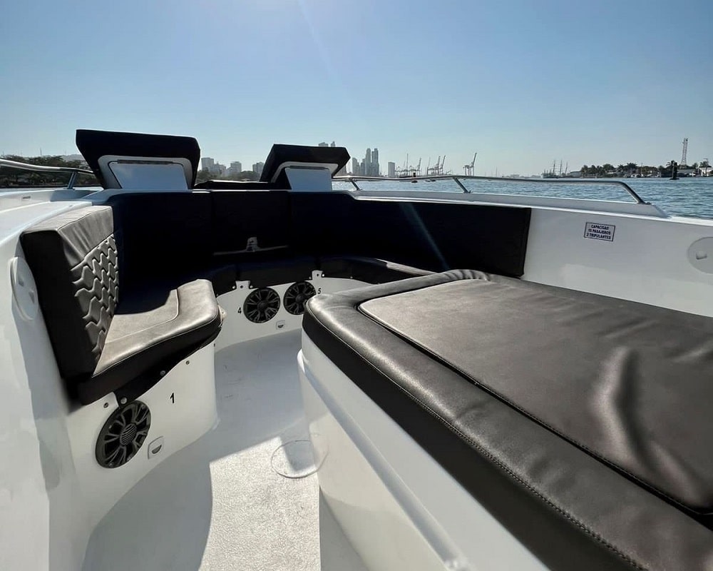 La lancha Martram es una embarcación de alto desempeño, ideal para grupos que desean combinar velocidad, estabilidad y elegancia en el mar. Su diseño moderno y funcional la convierte en una opción perfecta tanto para planes familiares como para celebraciones especiales, salidas entre amigos o experiencias corporativas exclusivas.