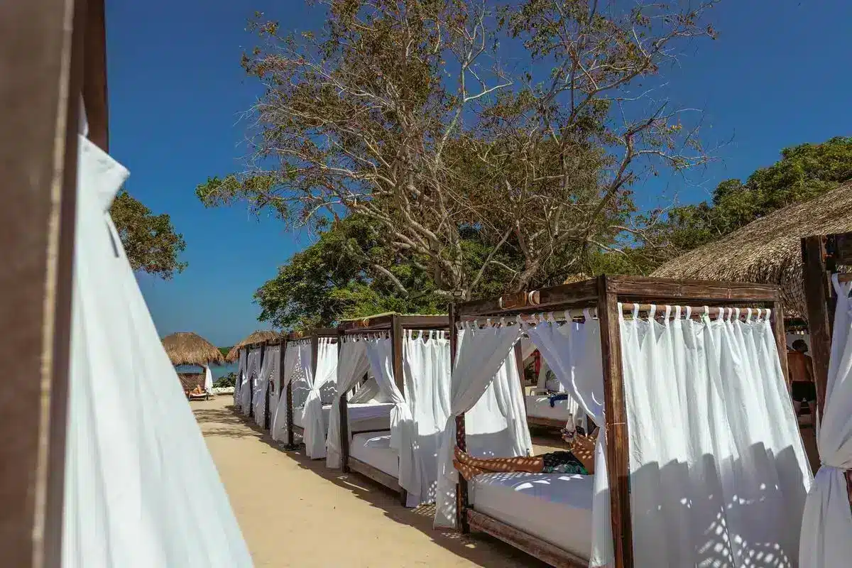Cabana (Cama Playa): Espacio privado y cómodo, ideal para descansar frente al mar.