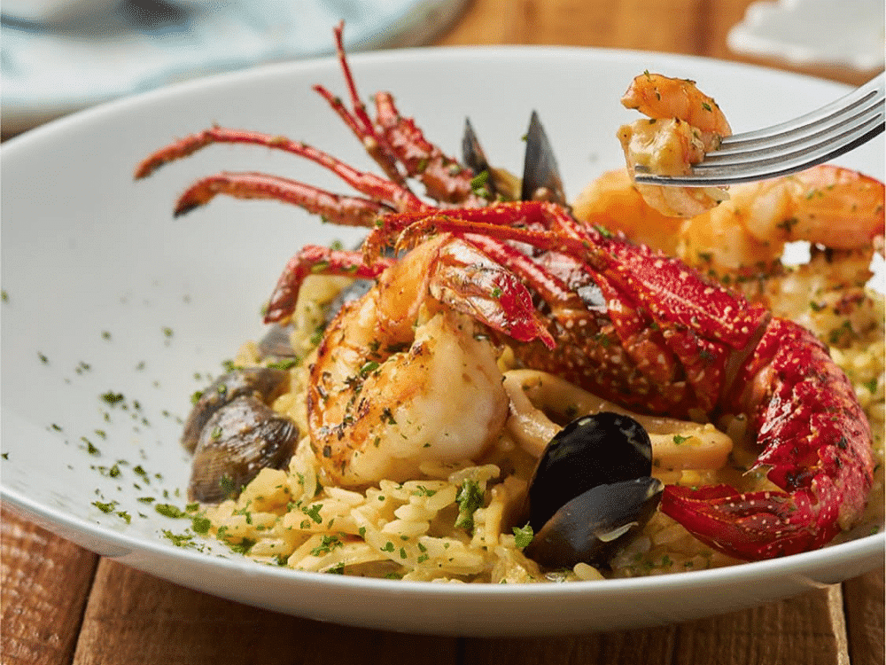 Acompañado de arroz con coco, ensalada mixta y patacones.
