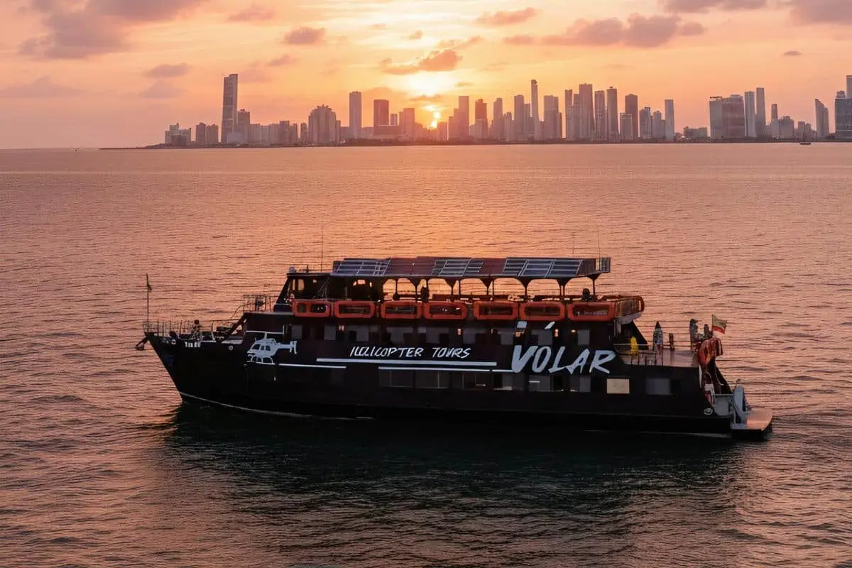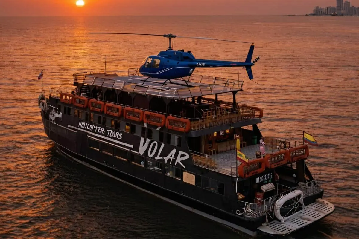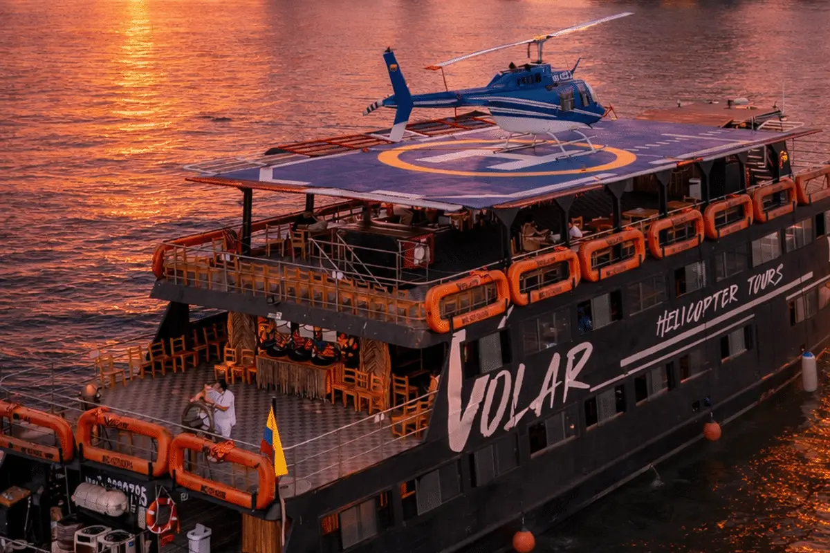 Noches Volar Cartagena es un tour panorámico nocturno por la bahía de Cartagena a bordo de un moderno barco de dos niveles, diseñado para ofrecer confort, vista privilegiada y una atmósfera vibrante. Durante 3 horas de navegación, los asistentes disfrutan de música en vivo, shows, gastronomía selecta y diferentes planes adaptados a todos los estilos.