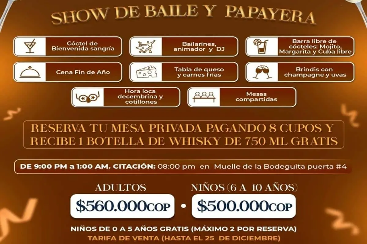 La combinación entre música latina, ritmos caribeños, luces y animación genera un ambiente festivo perfecto para despedir el año con alegría y estilo.