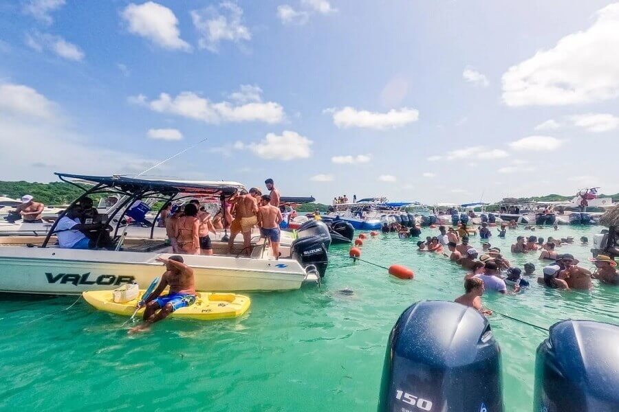 Isla Cholón es reconocida por su ambiente único: lancha junto a lancha, música caribeña, bebidas refrescantes y una fiesta en medio del mar. Las aguas son poco profundas, lo que te permite bailar y disfrutar de la música con total seguridad mientras te sumerges en el espíritu alegre y vibrante del Caribe colombiano.