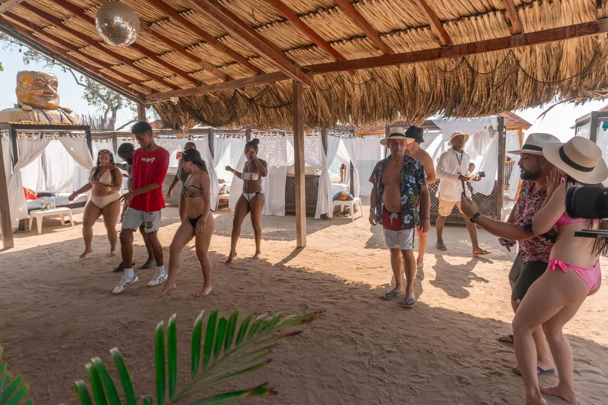 El cierre perfecto del tour llega en Bora Bora Beach Club, uno de los beach clubs más famosos y animados de las Islas del Rosario.